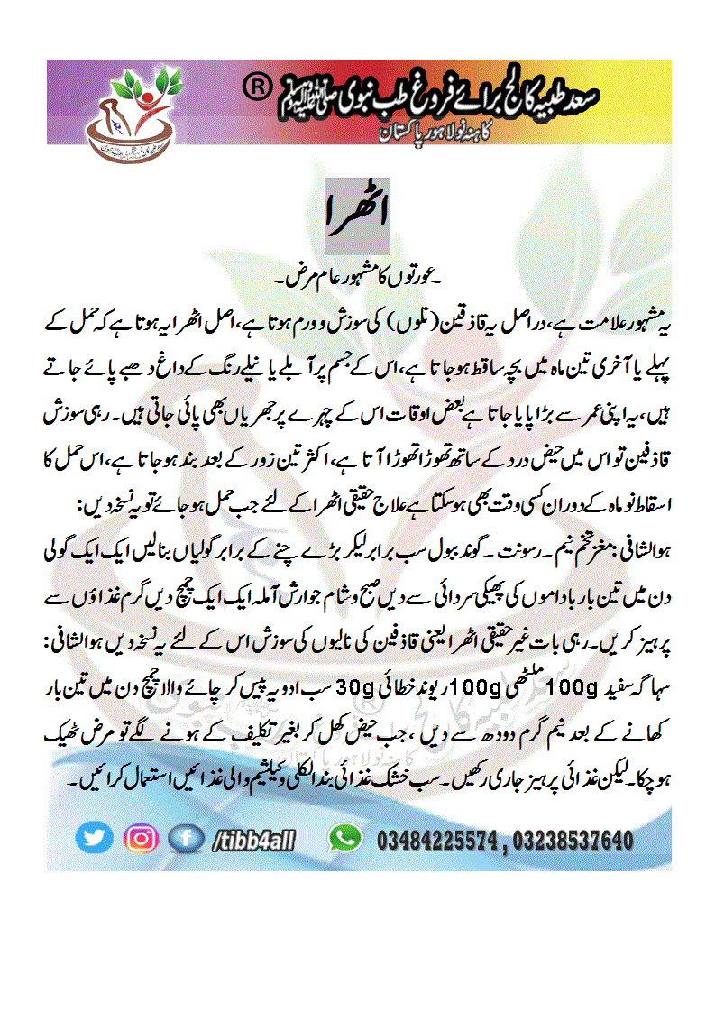 اٹھرا ۔ عورتوں کا مشہور عام مرض۔