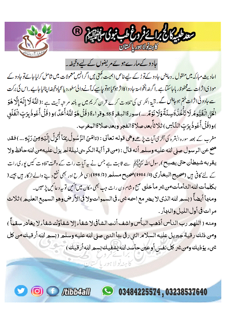 جادو کے مارے ہوئے مریضوں کے لیے وظیفہ۔