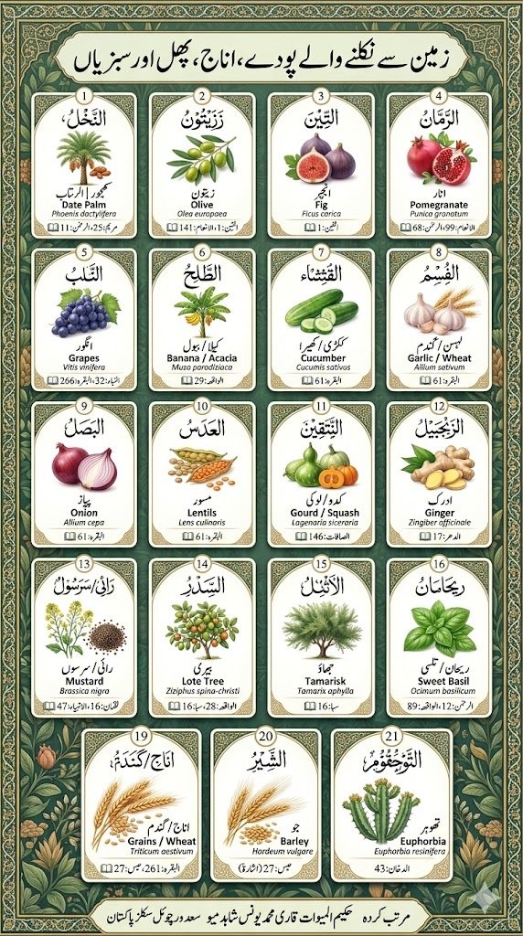 قرآن کریم میں مذکورہ اناج، پھل، سبزیاں اور حلال جانور حکیم المیوات قاری محمد یونس شاہد میو سعد طبیہ کالج