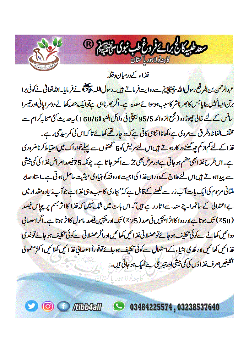 غذاء کے درمیان وقفہ