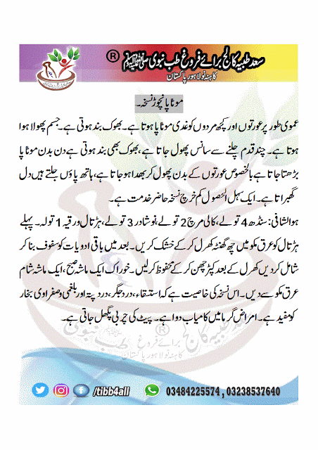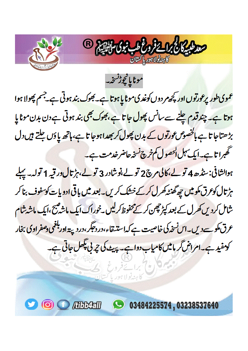 موٹاپا نچوڑ نسخہ۔