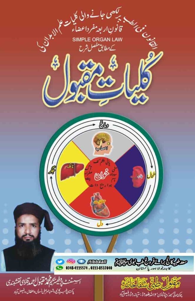 عمر تکمیل ایمان اور روحانی و علمی ترقی کیلئے میں بارگاہ ایزدی میں سربسجو د ہوں جنہوں نے قانون اربعہ مفرد اعضاء کو طب پاکستان کے نام سے کلیات مقبول کی صورت میں مفصل شرح لکھ کر اس قانون کو سادہ اور عام فہم زبان میں پیش کیا۔