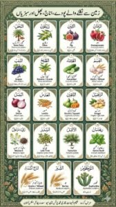 زمین سے نکلنے والے پودے، اناج، پھل اور سبزیاں